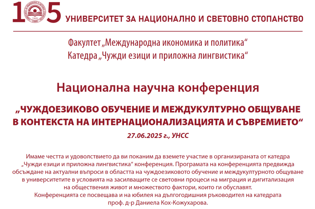 Предаване на доклади: до 31 юли 2025 г.