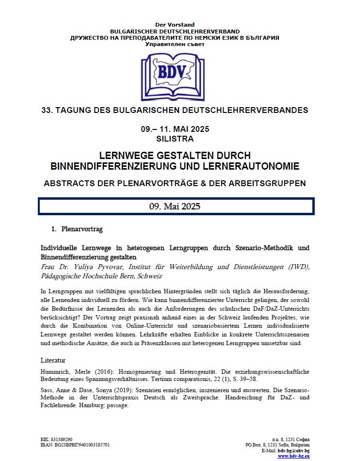 Tagungsprogramm BDV – Silistra 09.-11. Mai 2025